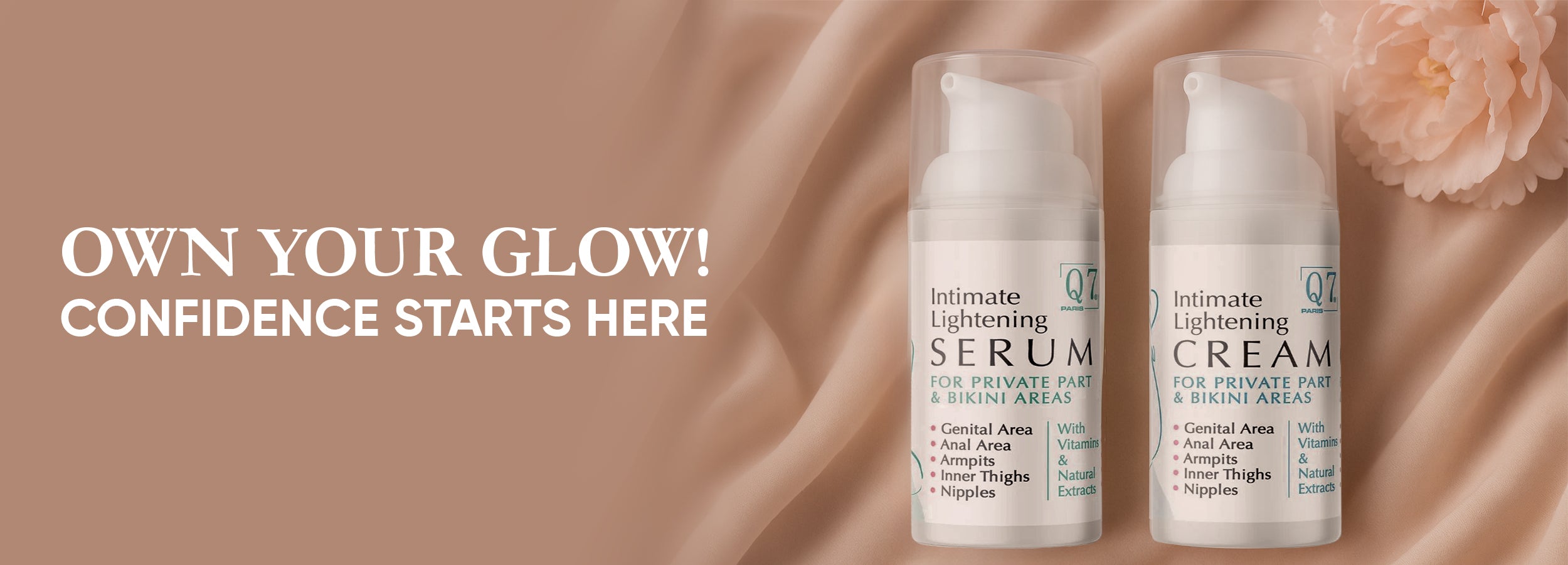 • Q7Paris Intimate Lightening Serum: For individuals preferring a more concentrated and rapidly absorbed modality, our serum helps to deliver potent active ingredients directly to the epidermal layers. Its lightweight composition ensures swift penetration, thereby helping to expedite the lightening process for a visibly refined and even complexion.