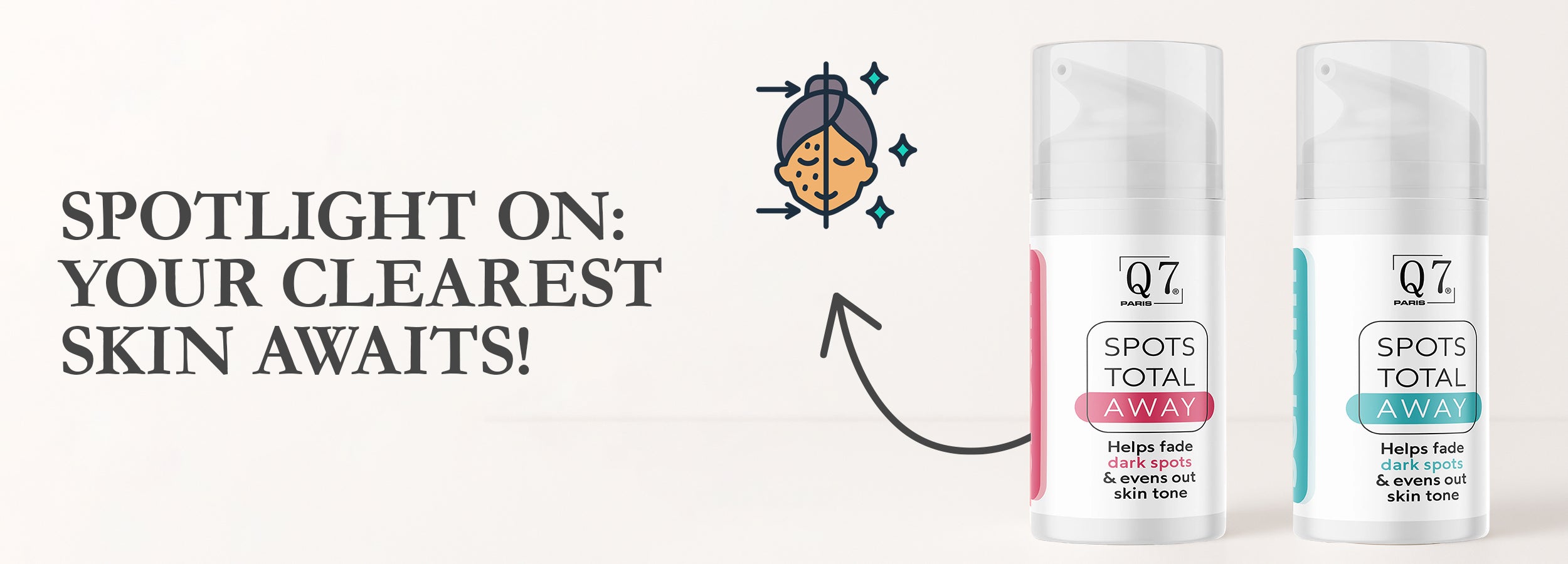 • Q7Paris Spots Total Away Serum: This product represents an intensive treatment designed for pervasive spot reduction and overall cutaneous clarity.